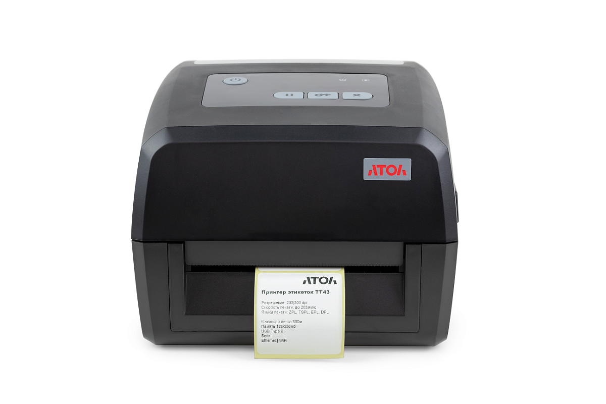 Принтер этикеток АТОЛ ТТ43 (термотрансферный, 300 dpi, USB, RS-232, Ethernet, ширина печати 108 мм, скорость печати 152 мм/сек)