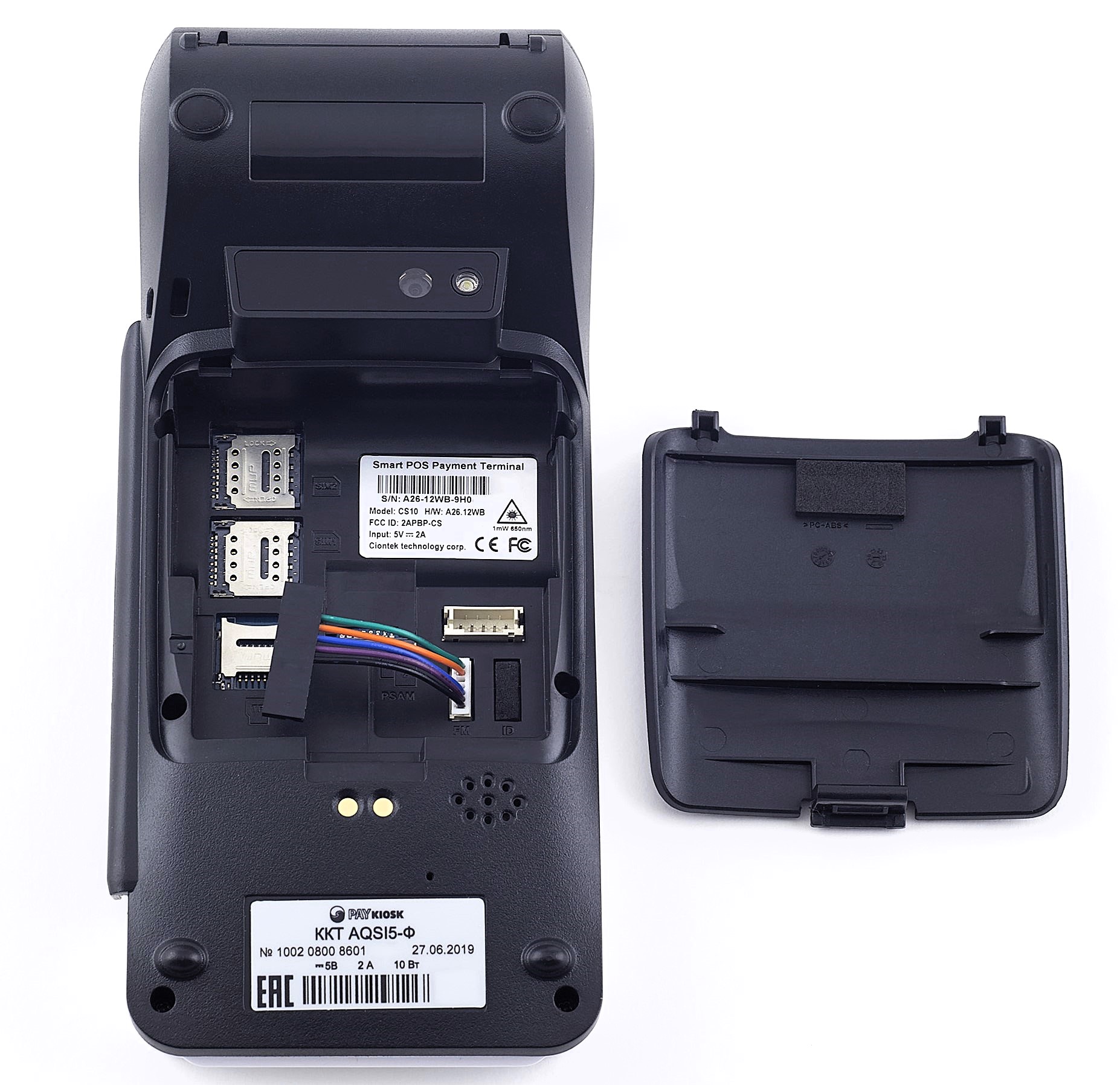 Смарт-терминал оснащен аккумулятором 2 600 мА·ч, что обеспечит до 12 часов работы без подключения к электропитанию. Также, бонусом для выездной торговли с помощью смарт-терминала aQsi 5 станет наличие камеры 5 Mп, с автофокусом и вспышкой, которые можно использовать как встроенный 2D сканер штрих-кода. Для печати используется принтер, работающий по технологии термопечати с ресурсом более 100 км. Компонент позволяет выдавать покупателям качественные чеки с хорошо читаемыми символами. В настройках можно настроить шрифты: тип, размер и так далее. Можно использовать ленту шириной 57 мм, в одной строке умещается 32 символа. Максимальная скорость печати составляет 70 мм/сек.Преимущества aQsi 5